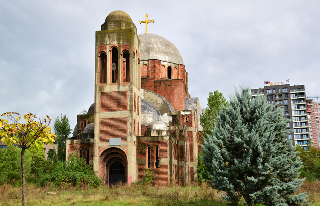 1992 yılında yapımına başlanan bu kilise bölgedeki Sırplar ve Kosovalı müslümanlar arasındaki politik tartışmalar sebebi ile bir türlü bitirilememiş. 1998 yılında ancak dış iskeleti tamamlanabilmiş. 2021 yılında burada düzenlenen bir dini tören sonrası tekrar gerginliğin artması sonucu müzakereler tıkanmış. Görünen o ki uzun yıllar böyle kalacak gibi.